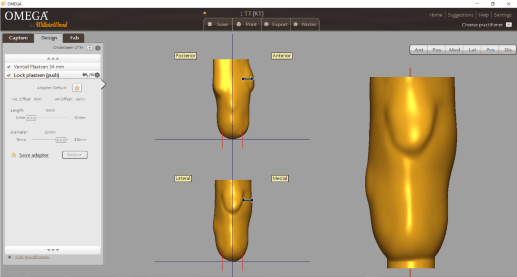 Bij een digitale maatname voor een prothese scannen wij je stomp met een speciale wit licht scanner of maken een afdruk van je stomp met e-cast (een gipsverband) en scannen die vervolgens in in de computer. Hierdoor krijgen wij een perfecte digitale afdruk van jouw stomp. Dit digitale model wordt door middel van software gecorrigeerd en ontworpen door Willem of Simone. Vervolgens wordt het model 3D gefreesd.